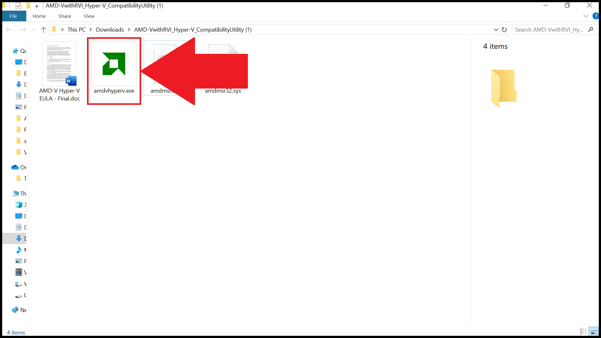 3. 압축이 풀리면 AMD-V 감지 유틸리티의 .exe 파일을 마우스 오른쪽 버튼으로 클릭하고 관리자 권한으로 실행을 선택합니다.