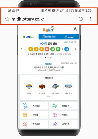 모바일 홈페이지 m.dhlottery.co.kr